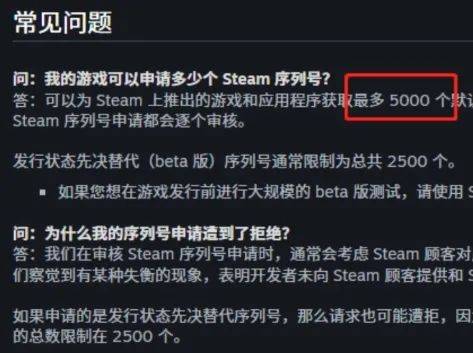 不过,在Steam的开发者指南里有明确规定,前期游戏能申领的激活码被限制在5000个,所以对于销量大于这个数量的游戏来说,这个解决办法就不好使了。