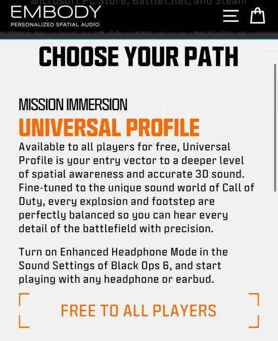 除了免费配置之外,Embody还推出了个性化的音效配置服务,售价19.99美元,并提供为期五年的订阅服务。这一功能专门针对那些追求更高精准度的玩家设计,旨在提供极致的空间音效体验。通过定制个人听觉档案,玩家可以获得更加准确的声音方向和声音细节。如果玩家对这一服务感兴趣,可以在试用期结束后购买解锁。