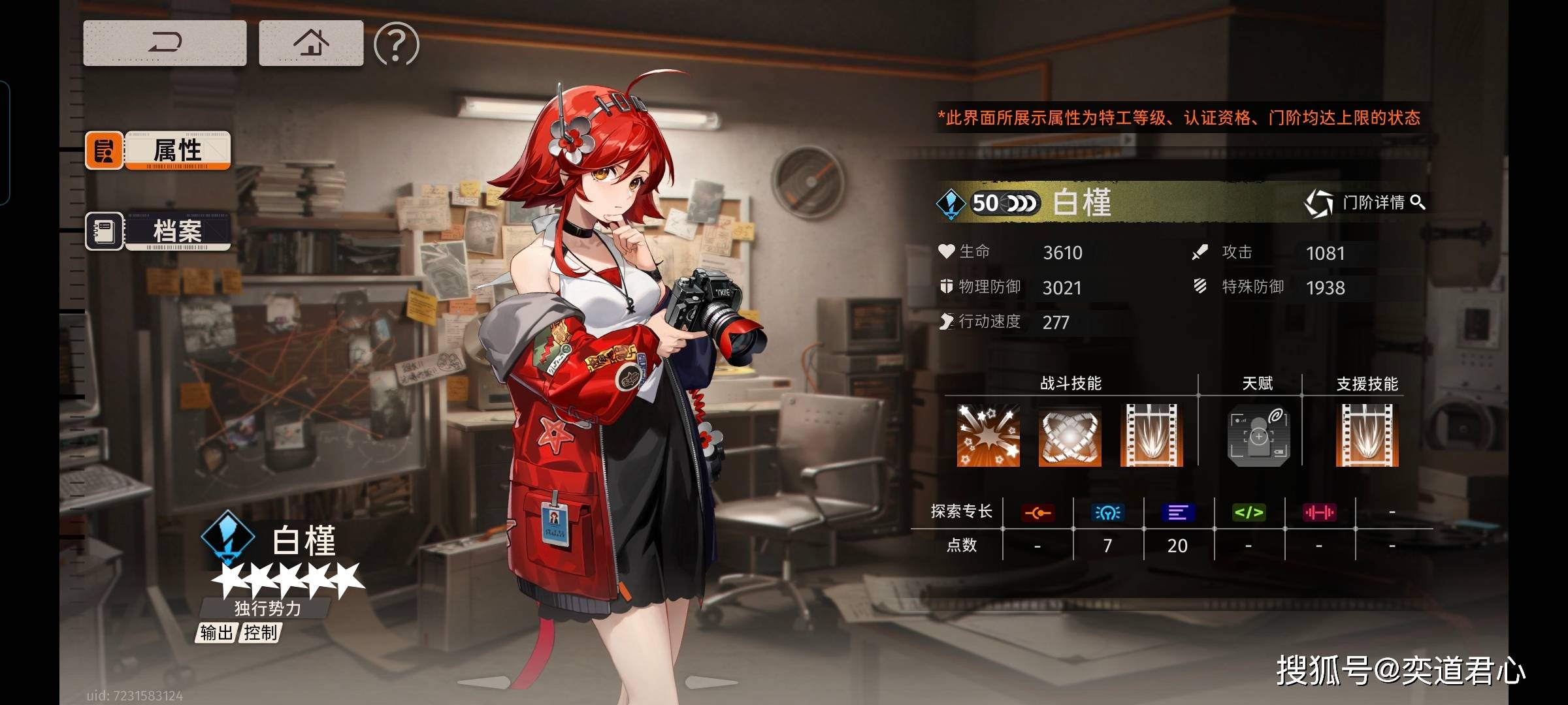 属于其他阵营,我个人相当喜欢她的完美一帧,至少在前期来看,白槿的压制力对于我们节省战损是相当重要的。40%的压制概率已经相当高了,而且每多一个独行势力的队友,还能在提升5%的压制概率,低损过关就靠她!