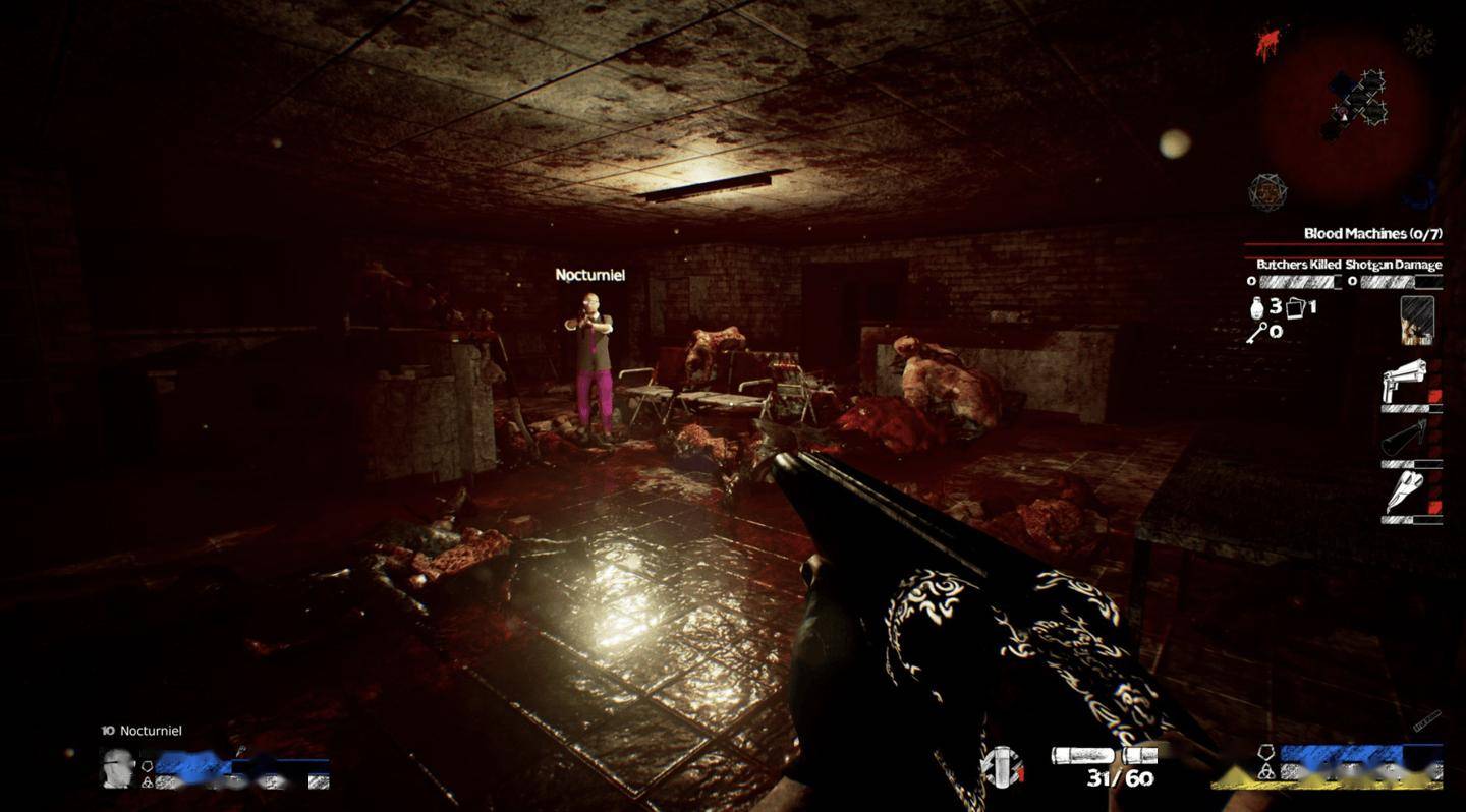 参考 Steam 评论,这款游戏流程类似 90 年代 FPS 作品,游戏中恐怖游戏主要以“回头杀”为主。