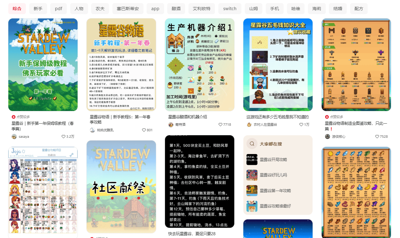 小七还透露到,就连垂直种田的《星露谷》,其游戏元素也相当丰富,除了农场经营之外,还包括挖矿钓鱼、技能提升、社交互动、探索冒险等,简单来说自由度很高。另外,消费纪也发现,在小红书平台上有很多关于《星露谷》的攻略,有关#星露谷攻略#的笔记就超过6000篇,#星露谷物语#的浏览量高达8.9亿。
