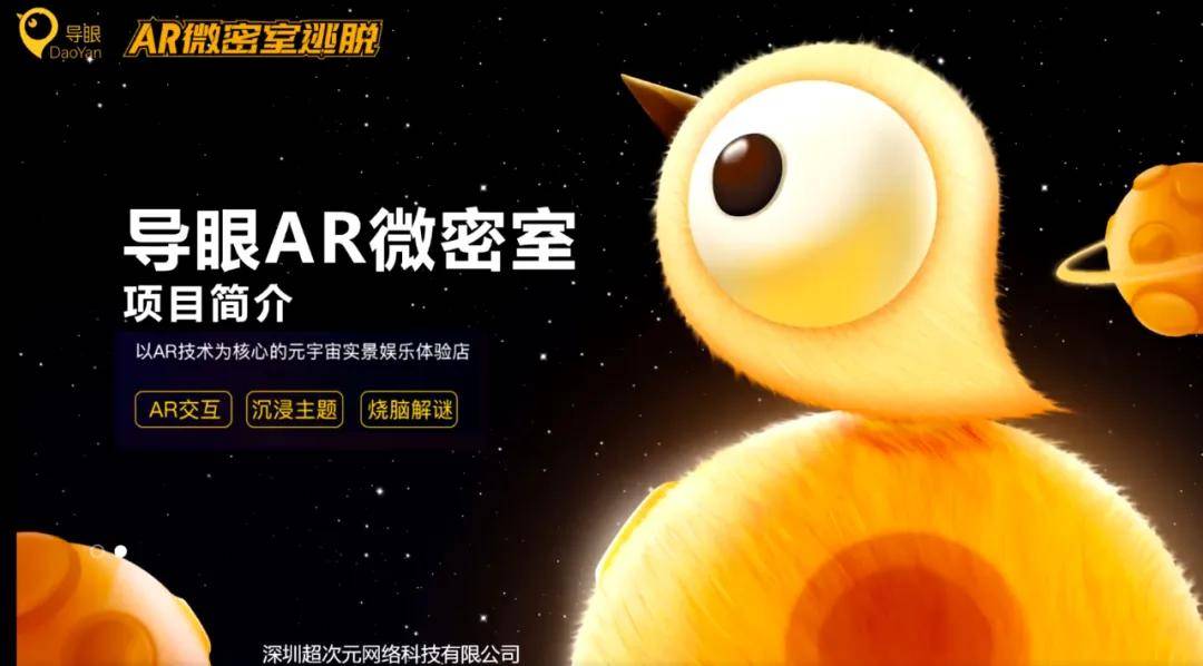 超次元主要介绍了其产品《导眼AR微密室》,这是一款结合了增强现实(AR)技术的互动游戏。该产品通过AR眼镜和手柄实现玩家与虚拟元素的交互,提供沉浸式的解谜体验。游戏的空间需求较小,仅需五平米,并且每场游戏的时长在20到40分钟之间,便于玩家灵活安排时间。