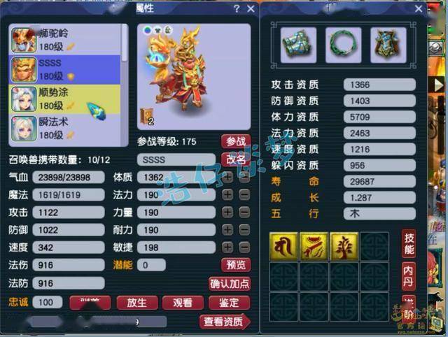 好了,这个175级狮驼岭展示完毕。全身不磨装备加身,刷任务不需要考虑耐久问题,美滋滋!他的宝宝多以血宠为主,主要是杀难度任务用来抗伤害的!其实这个号的硬件不算太高,但是搭配合理,而且有自己的套路,所以战胜七星天罡星不在话下!