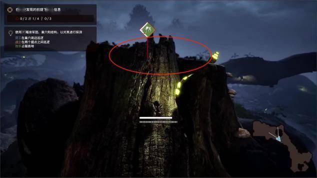 任务中还需要查清四支炮手的布置位置,炮手一般会布置在巢穴附近的高处。首先是在游戏的一开始就可以看见的一个巨大的树桩,在树桩上有一组炮手。