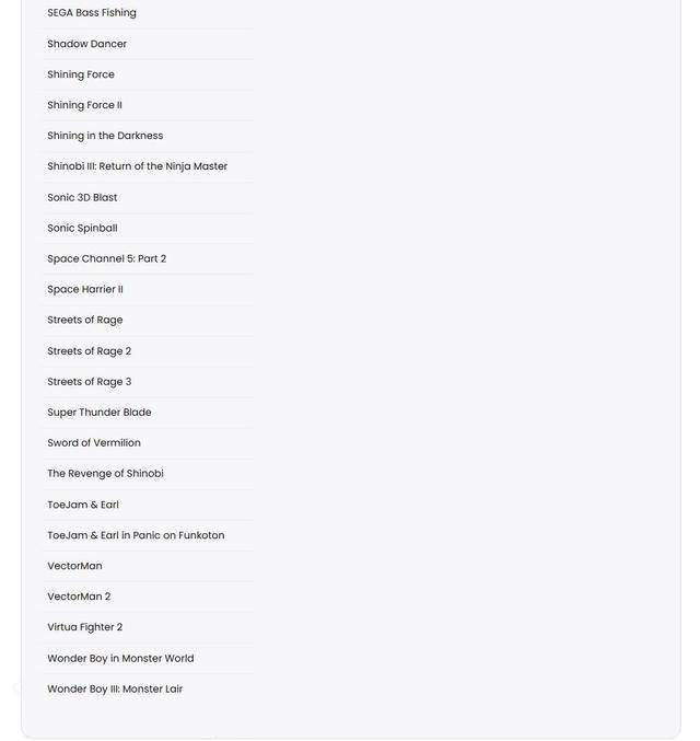 不过对于已经拥有“SEGA Classics”游戏和捆绑包的玩家,仍旧可以下载和游玩这些游戏,而且Nintendo Switch Online会员也可继续游玩部分经典游戏。此外世嘉方面并未解释下架这些游戏的具体原因。