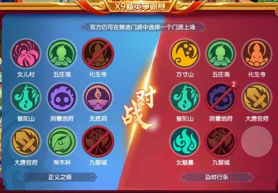 天启组决赛由正义之师对战及时行乐,禁选方面,正义之师被禁化生九黎,及时行乐被禁地府九黎。双方可以选择阵容并不少。