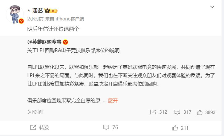 中间或许有PDD这样退出的资本,但也只是将席位转给了新的加入者。像今年的RA这样彻底退出,席位交由英雄联盟赛事官方回收的情况,在LPL赛区还是头一次。并且这样的状况,还只是开始。
