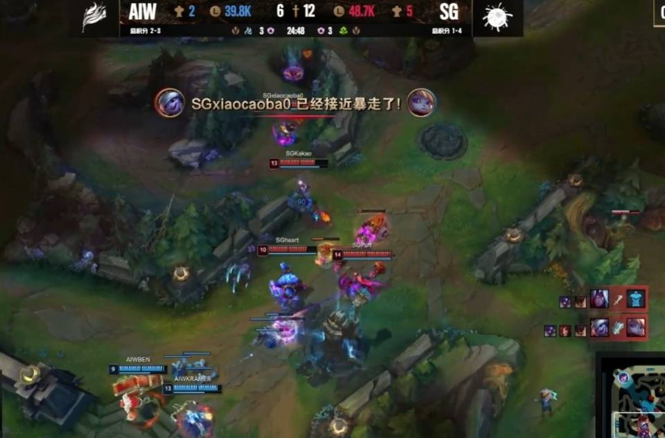 在对阵SG这把比赛里,前期AIW重心往凯南那发展,帮助凯南建立了一些优势,早早让狼行的石头人坐牢,但他是石头人后期一个大招就行根本不慌!而在中路,无状态这边,虽然队友配了视野,但他就是不看视野,导致自己被抓,让xiaocaobao的小炮起飞,接着就是进入他个人发挥的阶段!在后期AIW本来想要逼团战试试看,但凯南大招+下路组合的大招全给了石头人,甚至都没能打死,巨大的经济差距,让他们输掉了这场比赛!