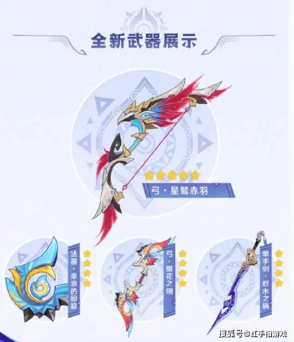 五星武器:星鹫赤羽、最初的大魔法师、贯虹之刃、万世流涌大典;