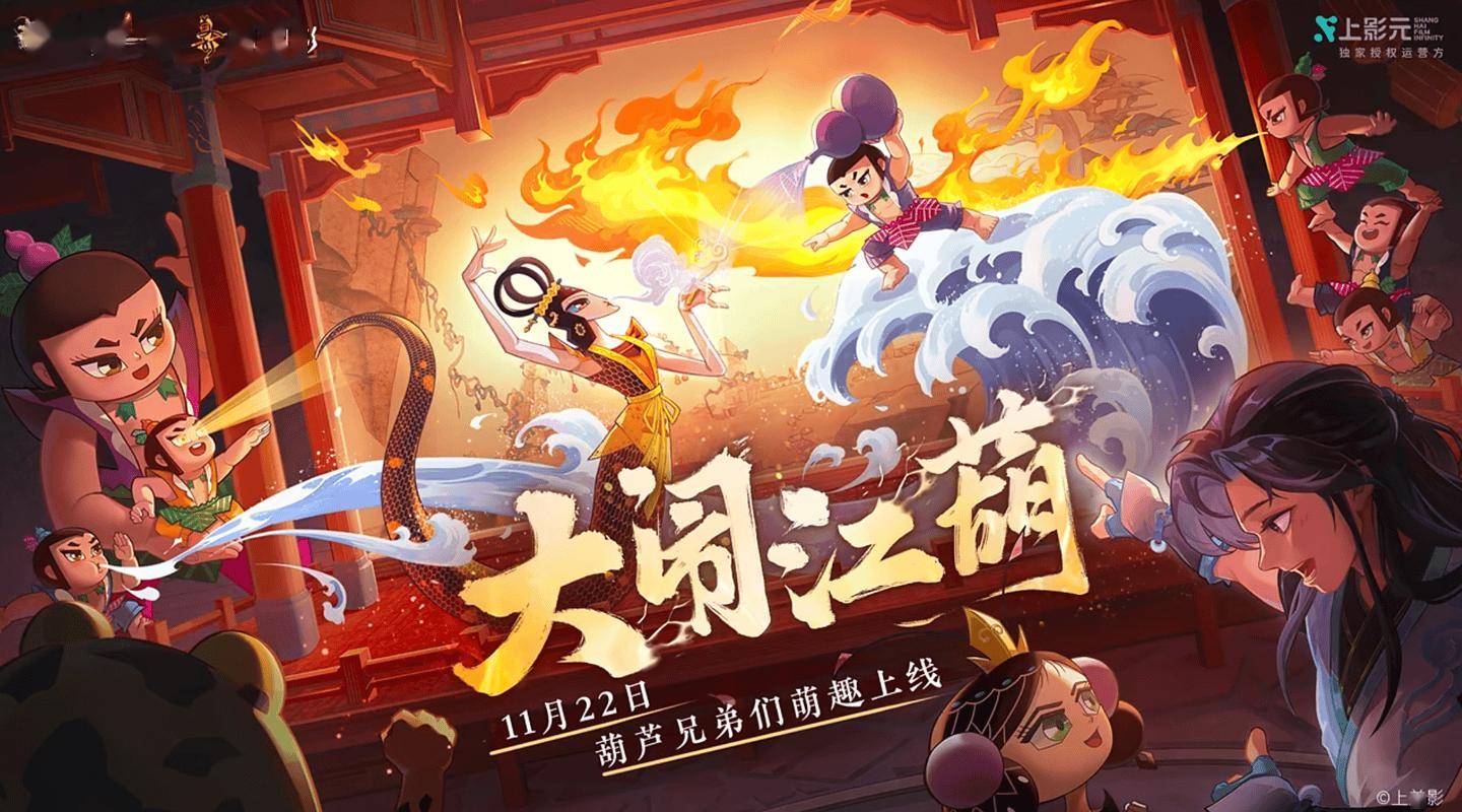 11 月 22 日,由上影元文化授权,逆水寒上美影联动开启,玩家可以做任务领取音乐《葫芦兄弟》、【语音包・葫芦兄弟】、葫芦兄弟聊天表情包。