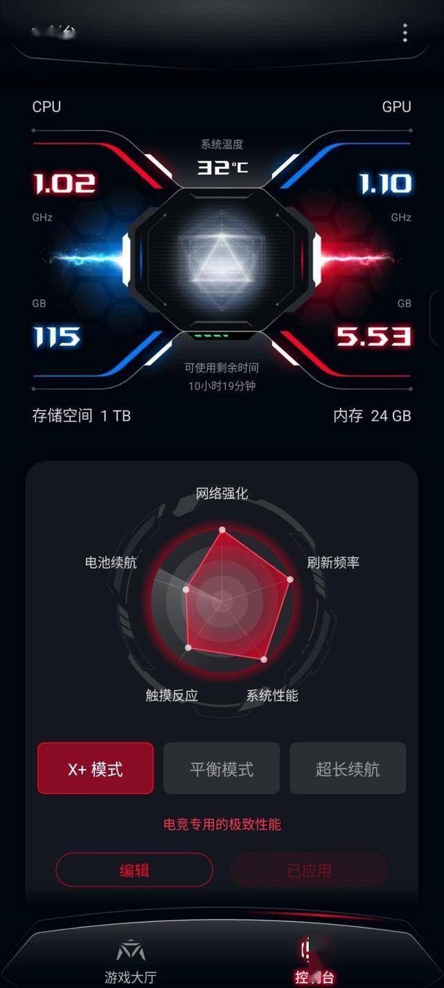 X模式可以理解为一般旗舰手机的高性能模式,不同的是ROG的X模式并非简单地将各种性能提升一些,它针对不同的游戏有独特的智能监控,以确保在不同游戏中用稳定的系统达到最极限的游戏性能。