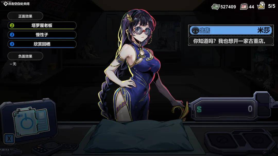 游戏的玩法类似《当铺人生》,每天随机的顾客,随机的商品,当铺老板压低进价,抬高出价,在客户耐心耗尽之前尽可能多地获取利润,维持店面运营成本并存活到主线完成。在此之上,加入可以为库存升值的员工系统,鉴别出商品隐藏的价值,赝品做旧,工艺品修复。转瞬间低买高卖的正反馈;和顾客讨价还价,最后发现对方只是虚张声势的戏剧性;高成本藏品压舱多日后终于等来冤种的如临大敌,将赛博潘家园的乐趣做进一款小而美的游戏里。