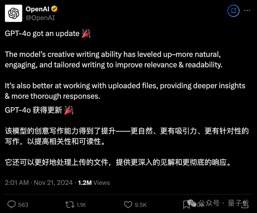 简而言之就是:o1满血版今年上线传得满城风雨,现在2024年都只剩下40几天了,OpenAI你暗搓搓更新个4o是闹哪样!