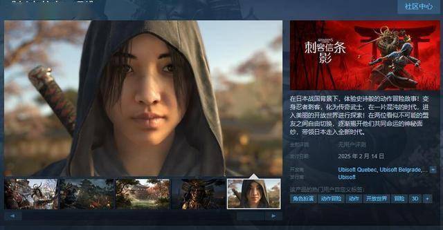 今日(11月21日),开发世界RPG《刺客信条:影》Steam页面公布,游戏支持简繁体中文,预计于2025年2月14日发售,感兴趣的玩家可以进入商店页面。