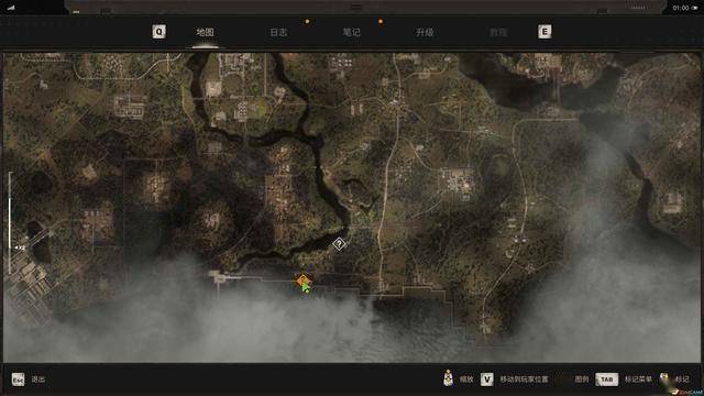 顶部是方位、标记点提示,可以按M打开地图进行标记,标记会显示在顶部。