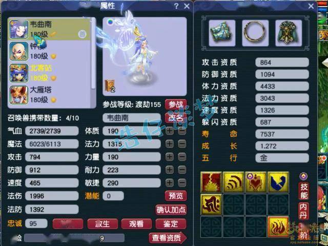 9技能龟速血宠童子,速度资质降到了100,防御资质已经养了很高了!