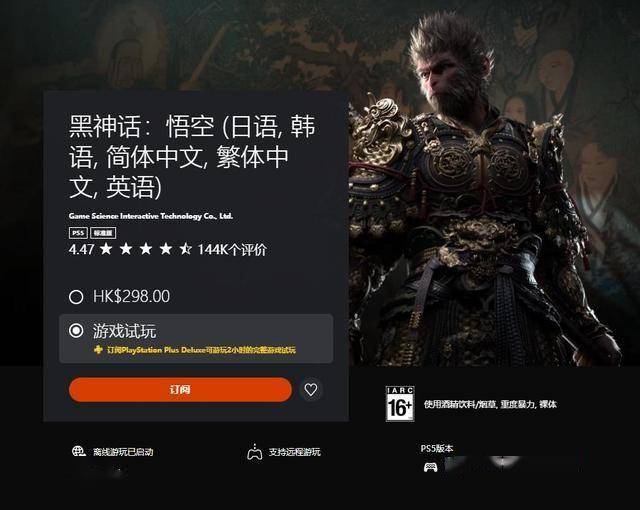 《黑神话:悟空》已加入PS Plus三档会员试玩游戏名单,现在订阅该服务的玩家最多可以试玩《黑神话:悟空》2个小时,并且试玩之后玩家如果购买了正式版,那么所有的奖杯和存档进度都可以继承。