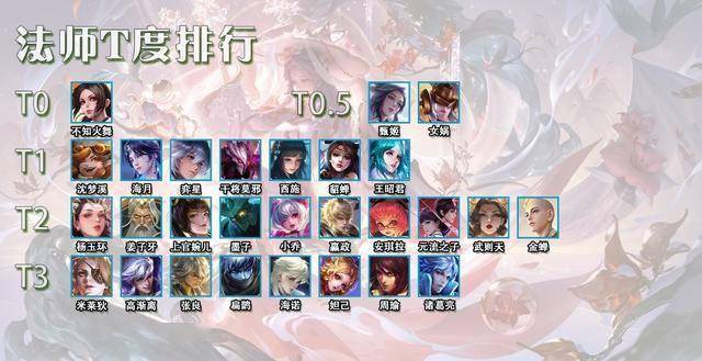 T0毫无疑问还是不知火舞,因为路人局能够带飞的中路可以说就这一个,前期强势方便出节奏,其他的法师都很难做到。