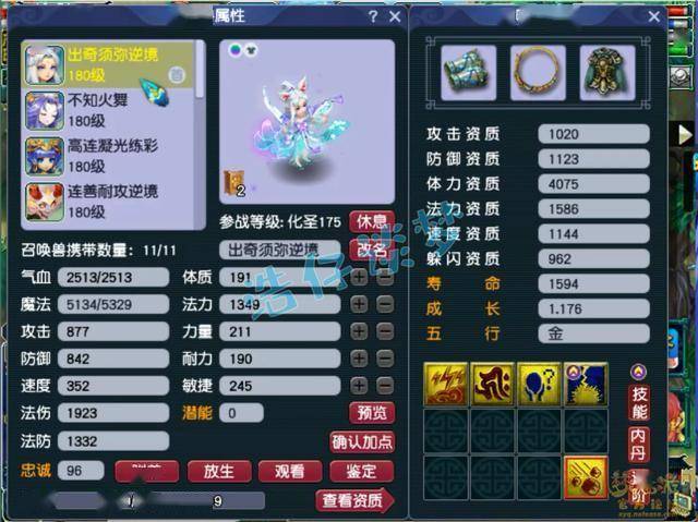 6技能高连凝光炼彩妙华天女,成长资质很不错,套装带的是高必!