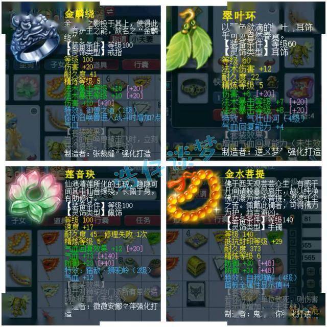 戒指和耳饰下排都是双法暴一伤害,配饰下排气血防御气血回复,手镯下排双防御!