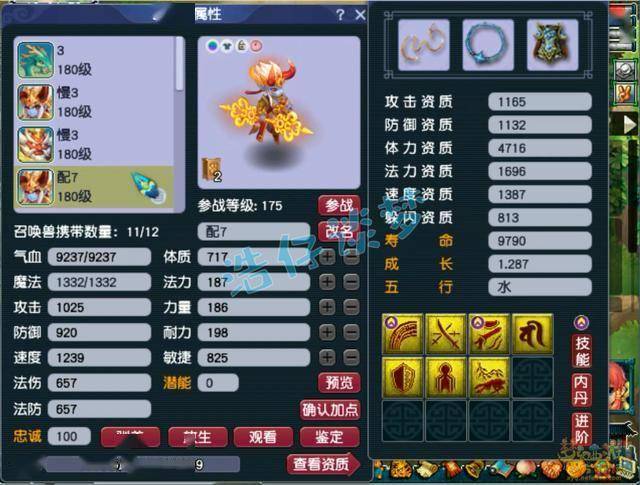 8技能龟速血宠童子,速度资质降到了极限,没有净台有点欠缺!