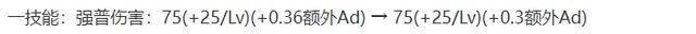 还有被动的额外伤害,则降低了大量的基础数值,作为补偿,也新增了0.2Ap,如果按照后期的1000点Ap来算的话,那实际上,总伤害并没有变化太多。
