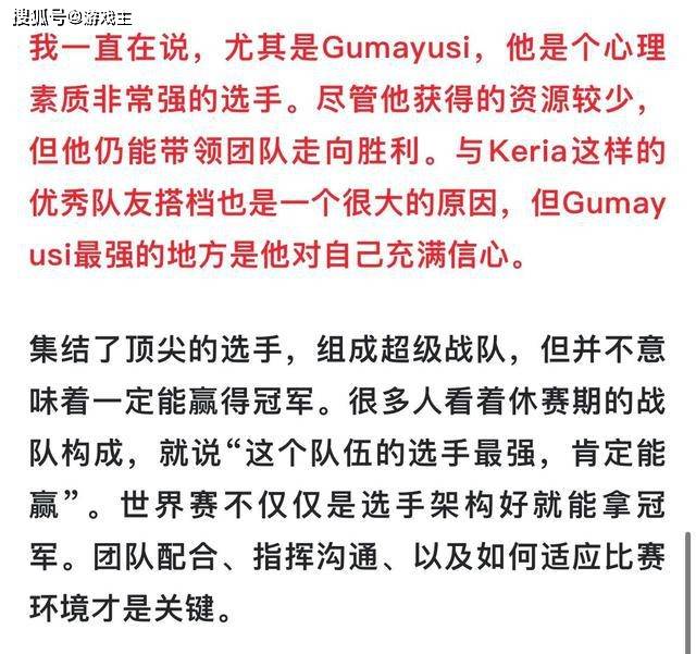 在此之前,T1战队的CEO还亲自下场回应了这个问题,摆明了就是经纪公司之间的沟通。而他本人也不想给经纪公司任何的热度,直接表示不会再做出任何的回应,之前的回应就是自己的态度。就在最近,他也是接受了国外的一些访谈,并且回应了很多的问题,他表示,希望官方赶紧解决d dos,这个对于选手的训练影响太大了,之后,他还谈到集结了顶尖的选手,组成超级战队,但并不意味着一定能赢得冠军。很多人看着休赛期战队的构成,就说这个队伍的选手最强肯定能赢,世界赛不仅仅是选手架构好,更需要的是团队配合,指挥,沟通以及如何适应比赛的环境。