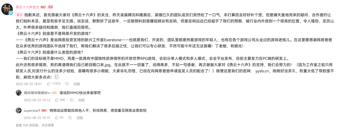 燕云在这一个月前刚宣布跳票延期,打磨产品。