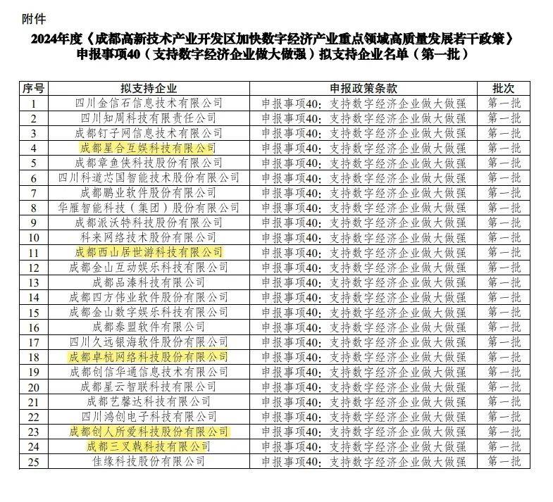 近期,2024年度《成都高新技术产业开发区加快数字经济产业重点领域高质量发展若干政策》申报事项40拟支持名单出炉,西山居、育碧和完美世界等游戏企业均在名单中。