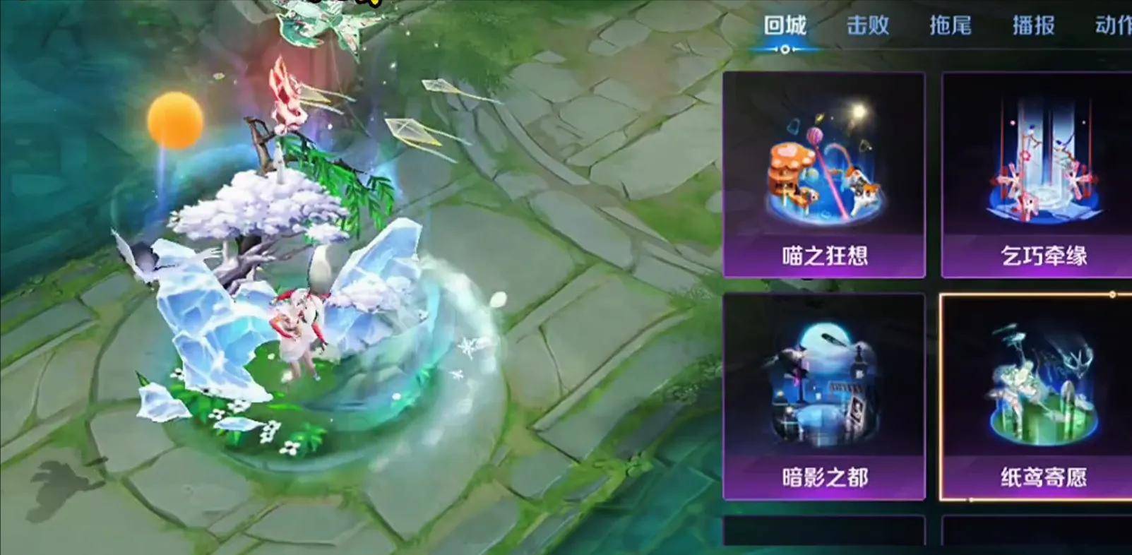 工作你的这款皮肤是以冰雪为主题的,而这一款回城特效是以春天为主题的,那么搭配在一块的感觉就给你一种冰雪消融步入春天的感觉。