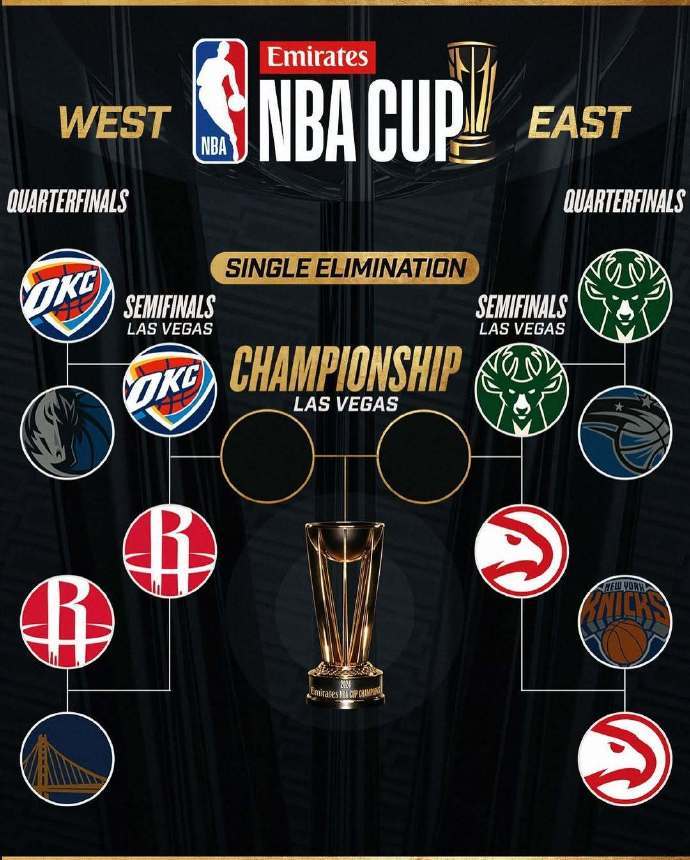 北京时间2024年12月12日,NBA杯赛8强战,老鹰淘汰尼克斯,火箭险胜勇士。这样一来,杯赛半决赛对阵出炉。