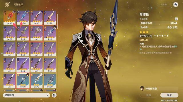 谈及专属武器,除非玩家打算将钟离培养为武神,否则并不推荐抽取。因为即便是一把三星的黑缨枪,也足以让钟离在战场上屹立不倒,更不用说活动赠送的武器或是其他角色的替代武器了。而专属武器则显得较为鸡肋,一旦不走武神路线,很难在其他角色身上发挥价值。