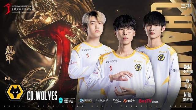真正的逆袭发生在最后阶段。狼队通过调整策略,掏出了版本最强的“哈水佛阵容”,并以此阵容实现了全面反攻。在回阳境的首战中,他们成功击败了其他绝活阵容,接着在接下来的战斗中展现了惊人的团队配合,尤其是Wolves.ZK(扎克)的精彩表现,精准的脱甲保护和逆转局势的操作让他一举成为赛场上的焦点。最终,狼队凭借强大的团队战术和稳健的个人表现,成功夺得2024永劫无间世界冠军赛三排赛的冠军。