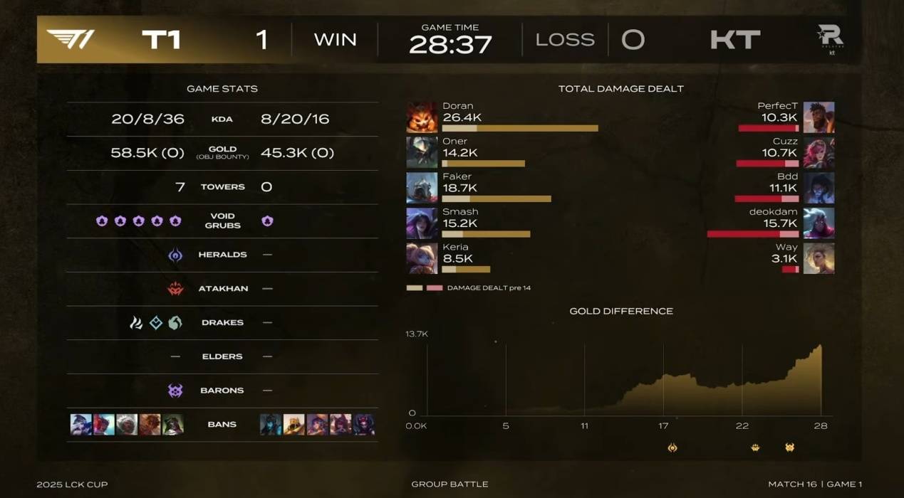 在之前进行的一场LCK职业联赛中,官方是给出了Faker选手的LCK登场数据,对阵KT的第一局比赛是Faker在LCK联赛登场的第1000场比赛,而在赢下对阵KT的这一局比赛之后,Faker的胜场数据为667。