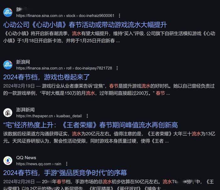 在搜索引擎搜索“春节流水”,每年都能看到许多好消息