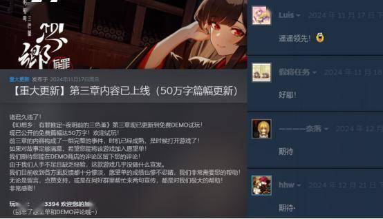 比较值得说的是,作为一款强剧情的文字游戏,很多玩了十几个二十几个小时的玩家都给给予了一致的认可,说明游戏大体还是没问题的。说到这,我竟然看到评论区还有上百个小时的玩家!?这是demo!?(挂着摸鱼了吧,笑