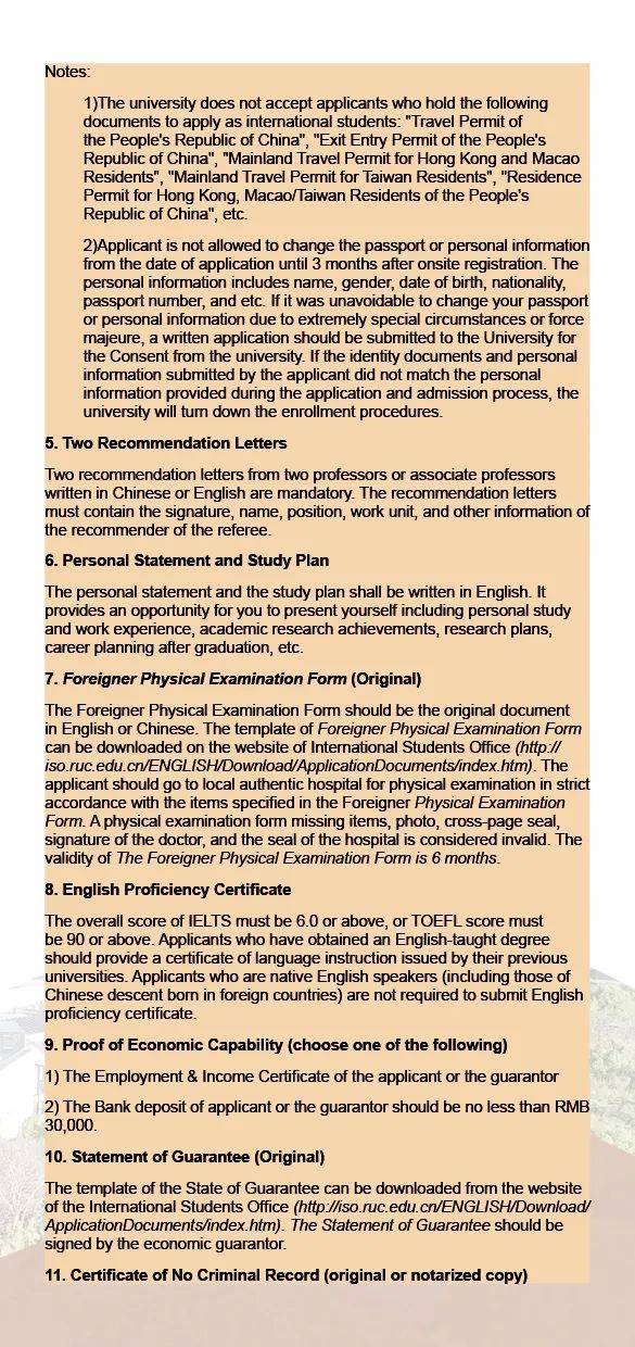 Please note: International Students Office (ISO) of RUC will review the application materials during the application period. Applicants who do not pass the preliminary online review shall resubmit the application materials before the deadline. Late application will not be accepted after the deadline.