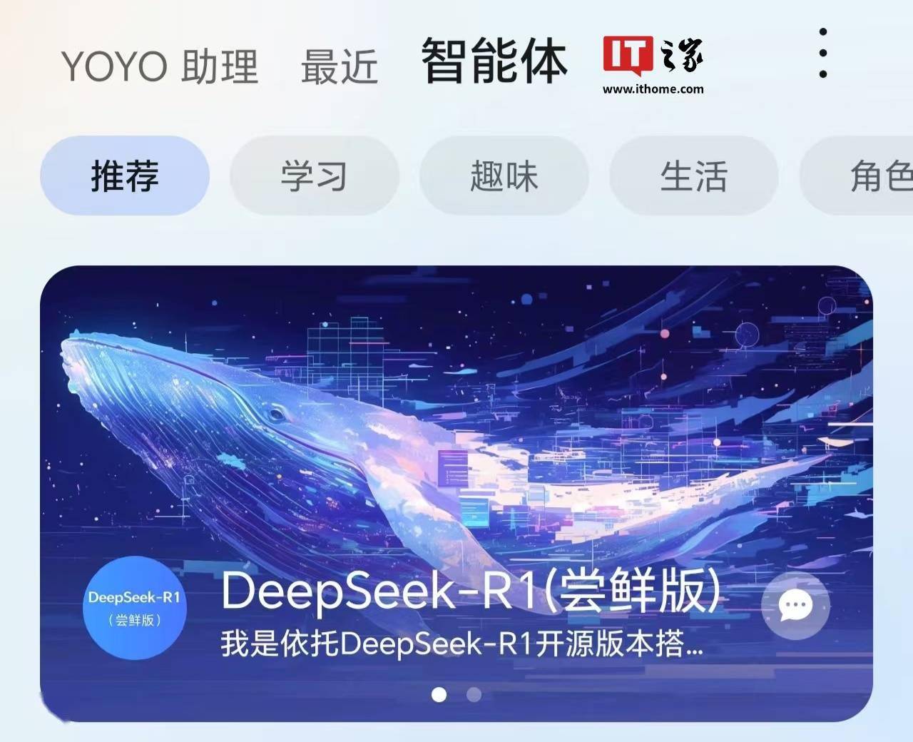 IT之家 2 月 9 日消息,荣耀在昨日宣布上线 DeepSeek 模型,荣耀手机(系统版本 MagicOS 8.0 及以上)用户,将 YOYO 助理升级到 80.0.1.503 版本及以上,就能在 YOYO 智能体商店找到 DeepSeek 开始对话。