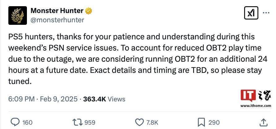 根据原计划,《怪物猎人:荒野》的Beta公测前半段本应在北京时间2月10日10点59分结束,而后半段则定于2月14日11点开始,持续到2月17日10点59分。鉴于此次网络故障,卡普空预计会将后半段的测试时间延长至2月18日10点59分,以确保玩家们能够充分体验游戏。