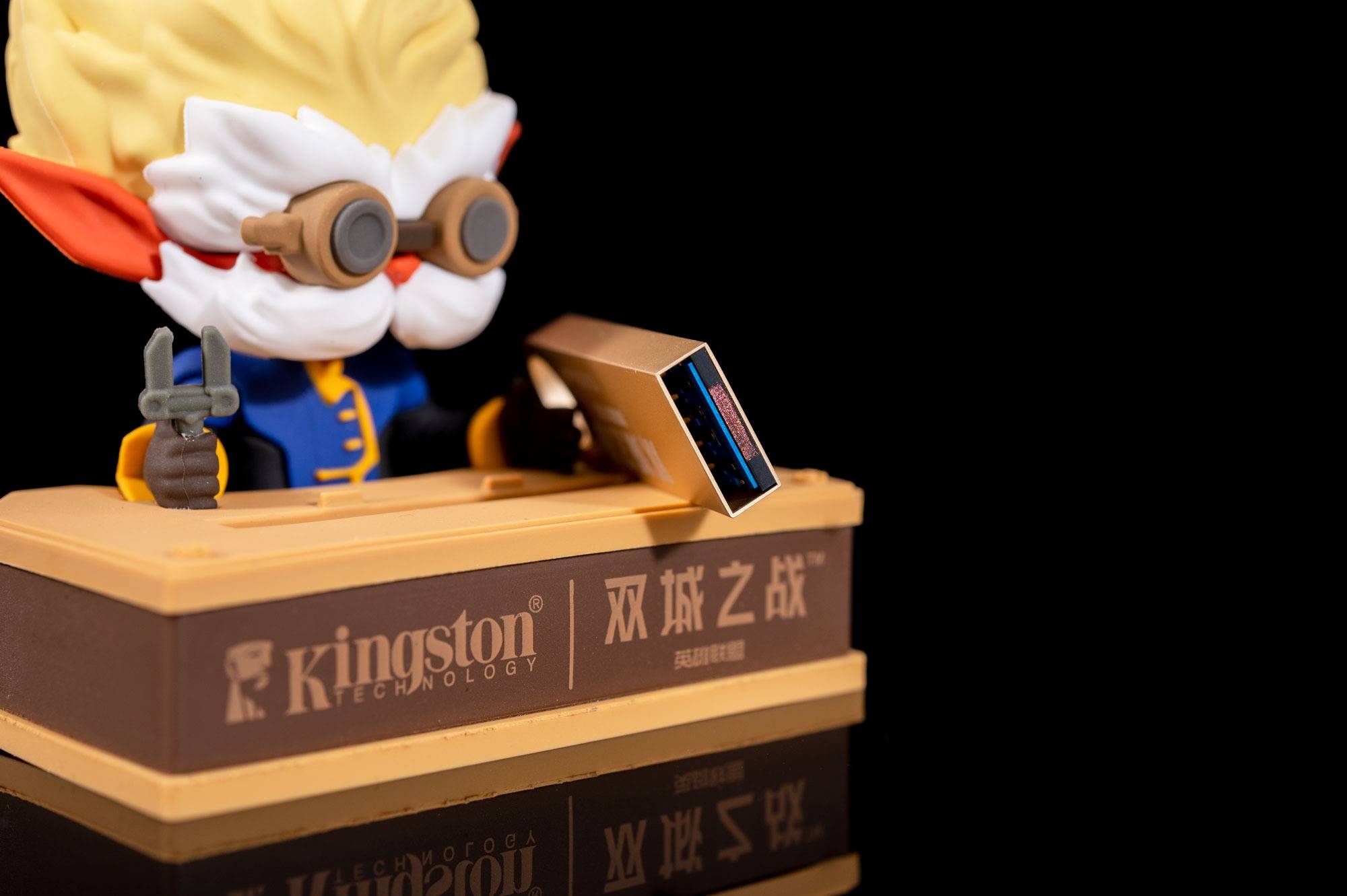 组装后可以看见帅气的金克丝形象,底部还有金士顿 X 《双城之战》联名的字样