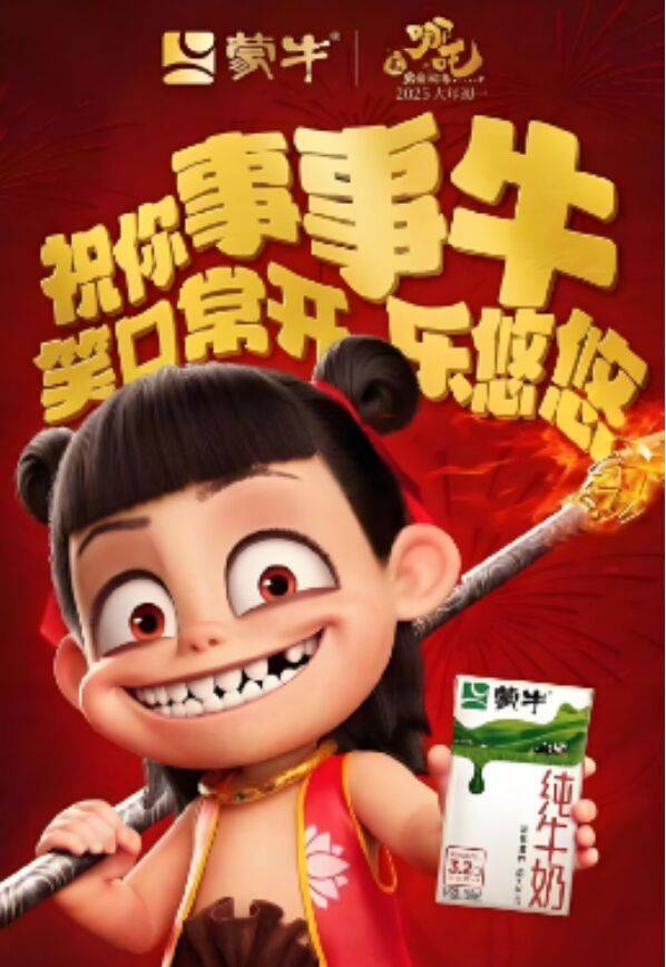 蒙牛是《哪吒2》公布的第一个品牌定制广告企业,纯牛奶广告非常吸引人。