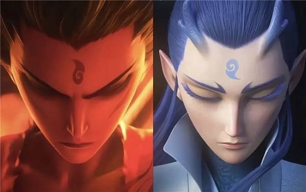 有网友发现,电影疑似与食品品牌中之杰也暗有合作,人物印记与中之杰LOGO惊人相似。哪吒和敖丙这个眉心专门做了花钿的设计式样,细看是倒过来的同一种形状,大多参考商周及战汉时期的兽面纹样,多流行在商周,这类纹样多以动物为原型,有虫、鱼、鸟、兽等动物特征,利用这些特征,让人们以此消灾祈福。