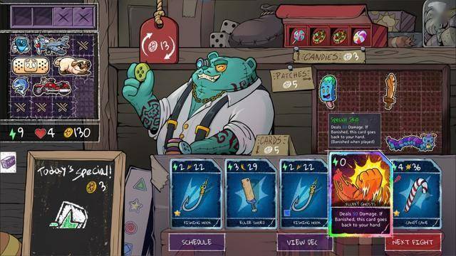 购买武器、技能卡、糖果和补丁。