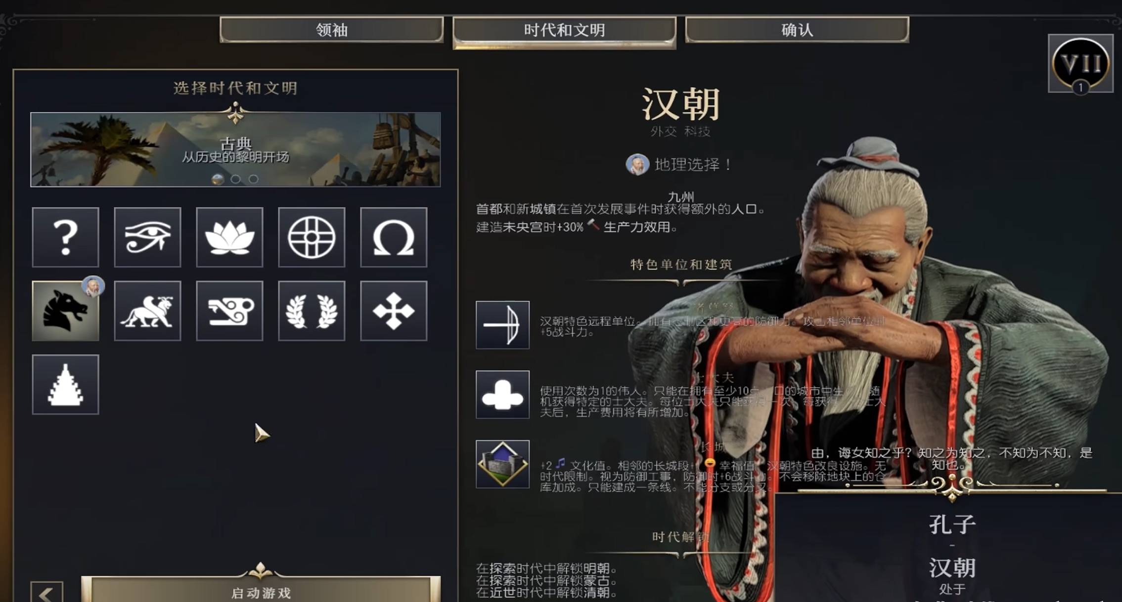 比如增加了新的领袖“孔子”,另外中国也是唯一一个跨越三个时代的文明,当玩家在使用孔子时可以解锁明朝、蒙古、清朝三个文明。对于这点新增的内容可以说是满足了很多国内玩家在玩文明时的遗憾了。