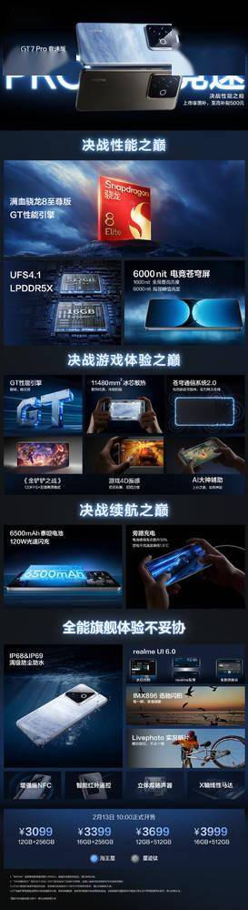 【CNMO科技消息】2月13日上午10点,据realme真我手机官方消息,真我GT 7 Pro竞速版正式发布。相较于Pro版,竞速版更侧重于性能,保留了核心配置,但在影像和指纹方案上进行了调整,价格也更为亲民。