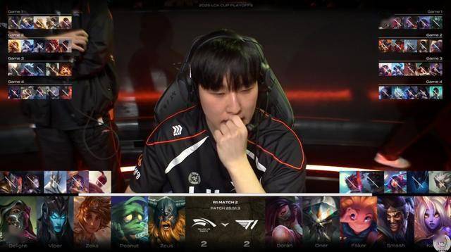 T1和HLE没出意外打满了Bo5,第四局甚至出现了HLE在绝境情况下Peanut皎月和Zeka的亚索大5的完美团画面。双方进入决胜局之后,T1拿出了上单Doran的阿卡丽,Faker的佐伊,新人也是拿出了德莱文配合Keria的索拉卡。而BP上通过给出复仇之矛,换来了打野蝎子。HLE方面也是已经弹尽粮绝了,上单奥拉夫,打野阿木木,这在一般比赛中可看不到。而在一度劣势的情况下,Zeus的奥拉夫也是真正做到了诸神黄昏,最后一斧头一斧头把老东家T1亲手淘汰出局。