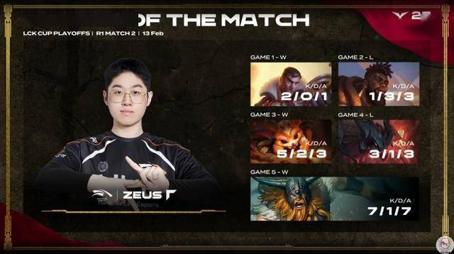 Zeus获得Bo5的MVP