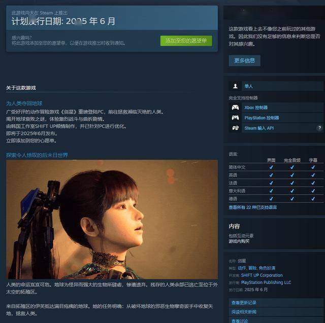 近期,备受瞩目的游戏《星刃》在Steam商店页面正式上线,由PlayStation负责发行。令人兴奋的是,该游戏不仅支持简体中文,还配备了中文配音,极大地满足了国内玩家的需求。更《星刃》的Steam版本并不需要玩家拥有PSN账户即可畅玩,且目前看来并未采用D加密系统,这无疑为玩家提供了更为便捷的游戏体验。