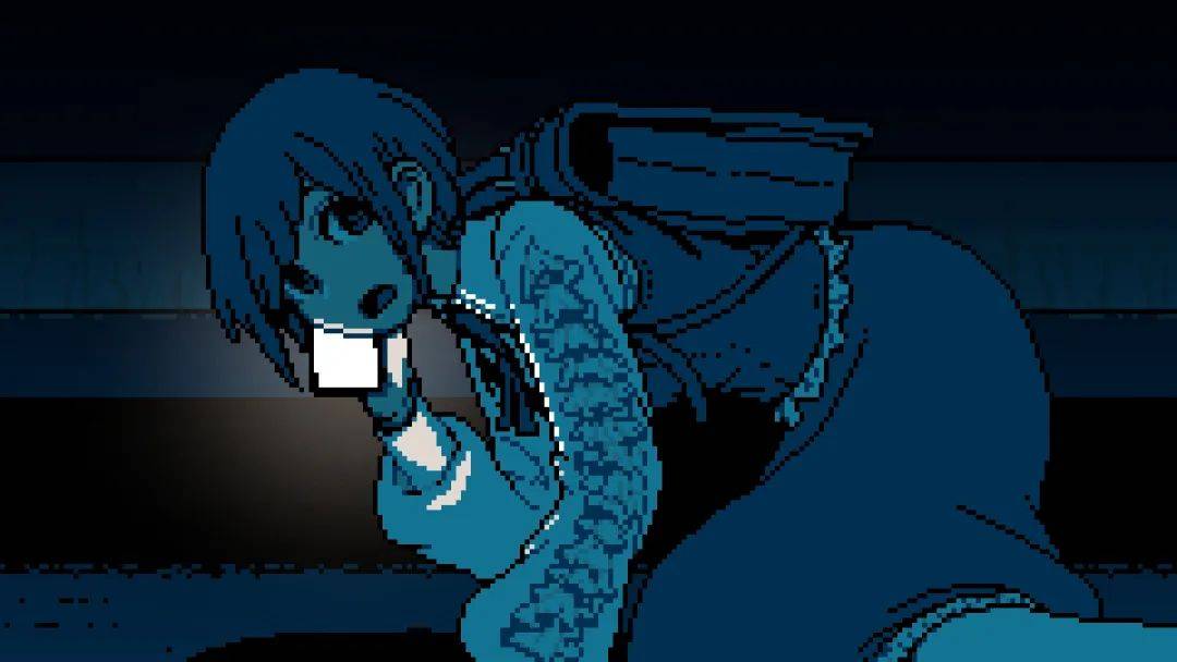 主人公(以及玩家)并不知道一个场景过去曾发生过什么,也正因此,那些尚不能理解的现象,便只能以极其怪异的模样出现。本以为是稀松平常的小路,用念视探看,竟有非人之物在徘徊;看似普通的房间,究其过去,却曾血迹斑斑。游戏没有 Jump Scare 式的恐怖元素,但上述这类场景也塑造出了一定的恐怖感,值得一提的是,为了增强画面表现力,开发团队有意限制了像素美术的色彩数量,鲜红色的“幽灵鬼怪”在以蓝色为主基调的游戏画面中显得更加引人注目。于是,在独特美术的加持下,开启念视的瞬间有时会给予感官和理性层面的双重强烈冲击——这里发生过什么?为什么会变成这样?玩家在因场景中的异象吃惊之余,无数疑问也会冲入脑海。