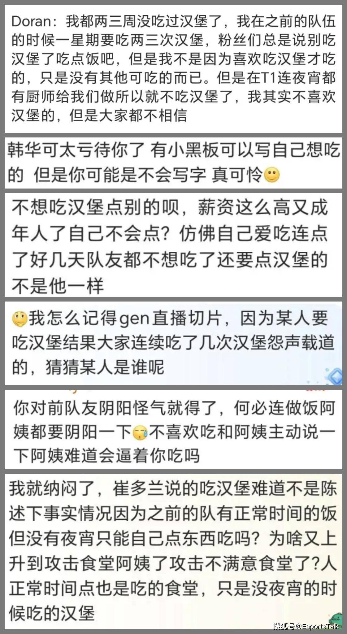 Doran的这番话,迅速被放大镜下的观众细细品味。一部分听众从中解读出了对HLE后勤管理的隐晦批评,质疑为何顶级电竞战队竟无法满足选手的基本饮食需求,甚至有人将其上升为职场霸凌的猜测,联想到此前GRF事件留下的阴影,任何风吹草动都足以引发公众的广泛担忧。然而,HLE的粉丝则对此表示强烈不满,他们指出战队食堂设有小黑板供选手点餐,Doran的说法被视作夸大其词,甚至有人翻出旧账,指出他曾因过于专注训练而频繁叫外卖,以及在GEN时期因个人偏好让队友连续数日陪吃汉堡,引发队内不满。